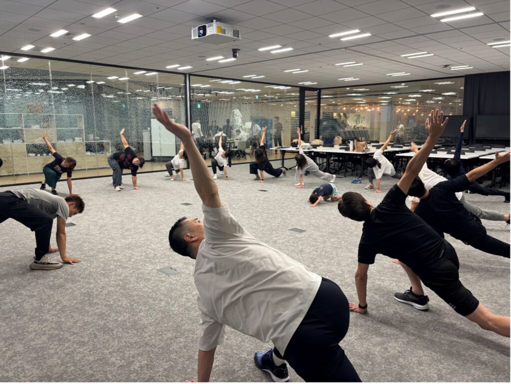 デスクワークで不調になりやすい部位のストレッチや、趣味のスポーツのパフォーマンス向上に役立つストレッチなど、参加者様の様々なニーズに合わせて、座学を交えながら実践形式で楽しく行いました。皆様、熱心に取り組んでくださり、活気あるセッションとなりました。