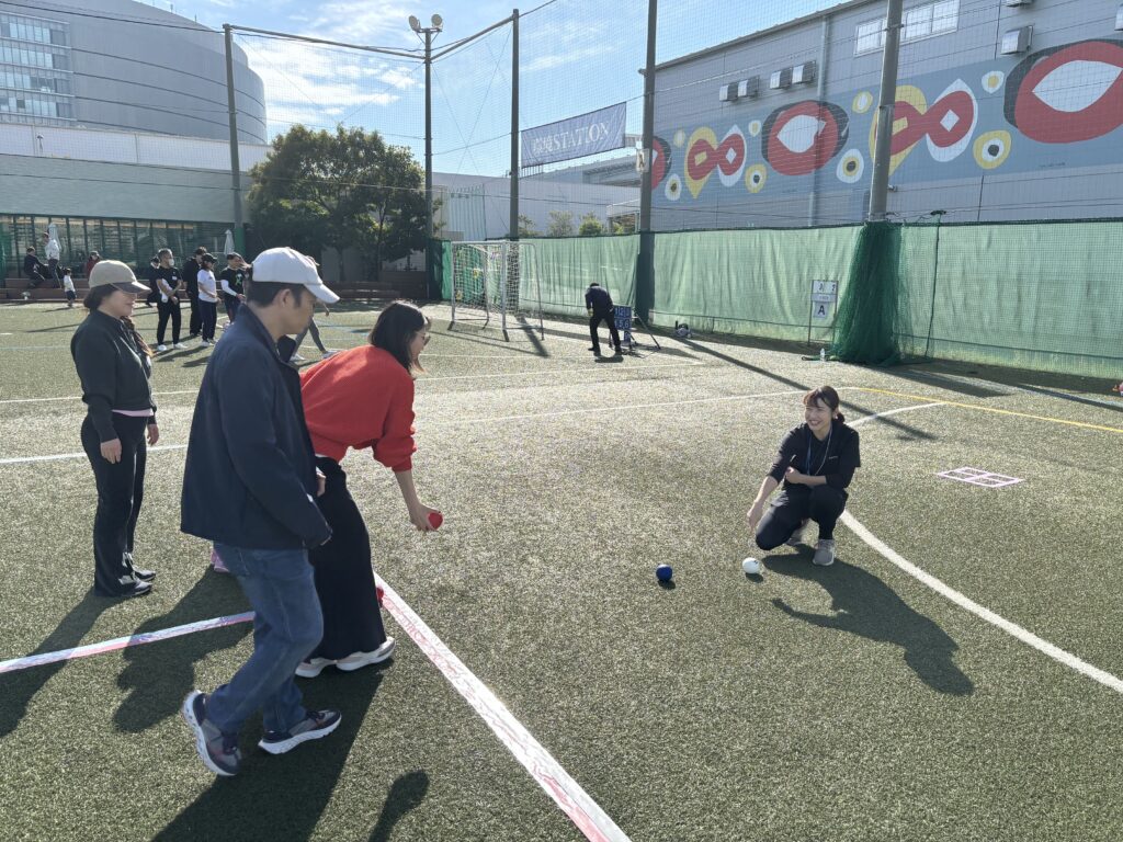 阿藤がミット打ち体験会、加藤がボッチャの体験会を開催。社員の皆様のご家族やご友人を交えての運動会でしたので、小さいお子様から大人まで、たくさんの方々が遊びに来てくれました。